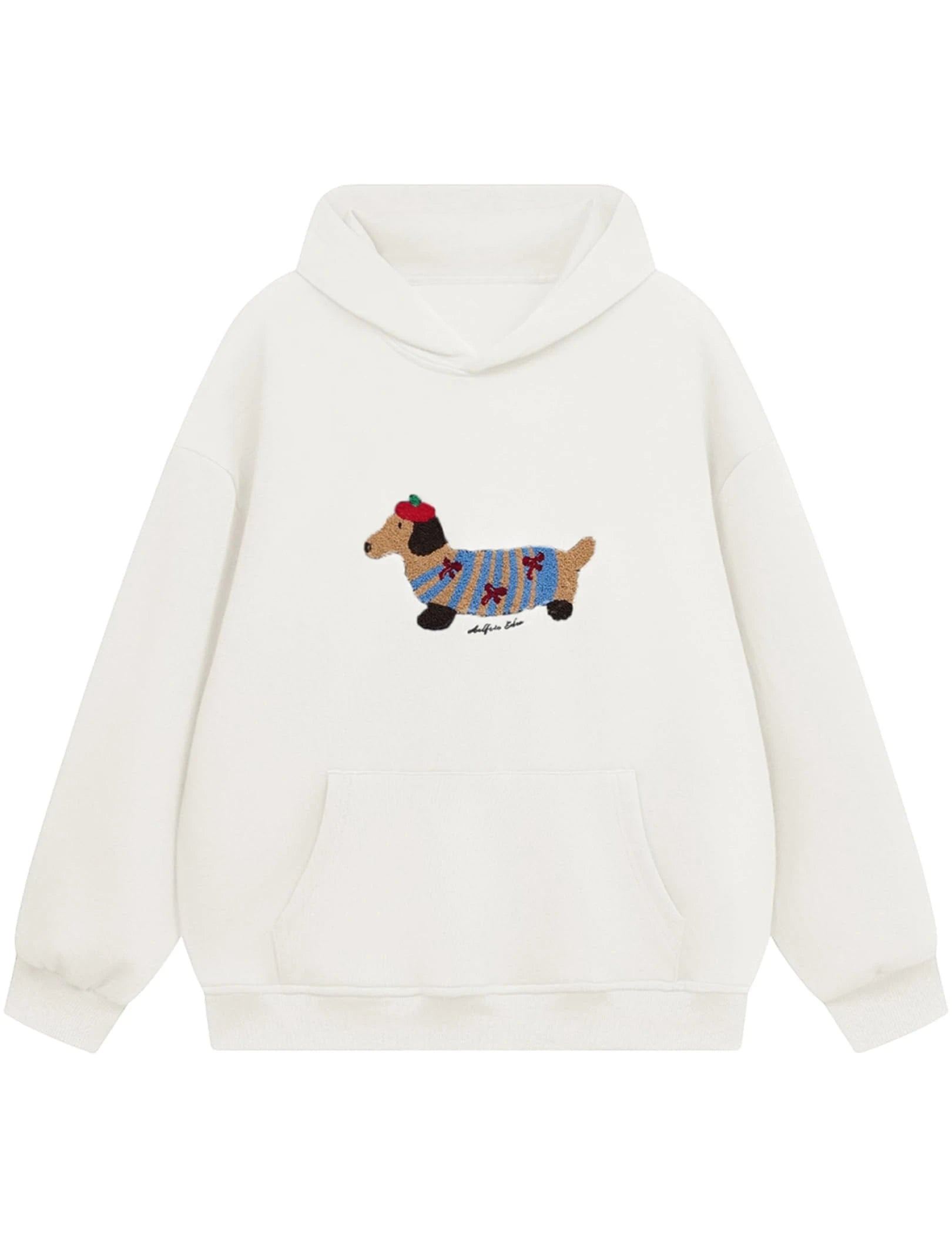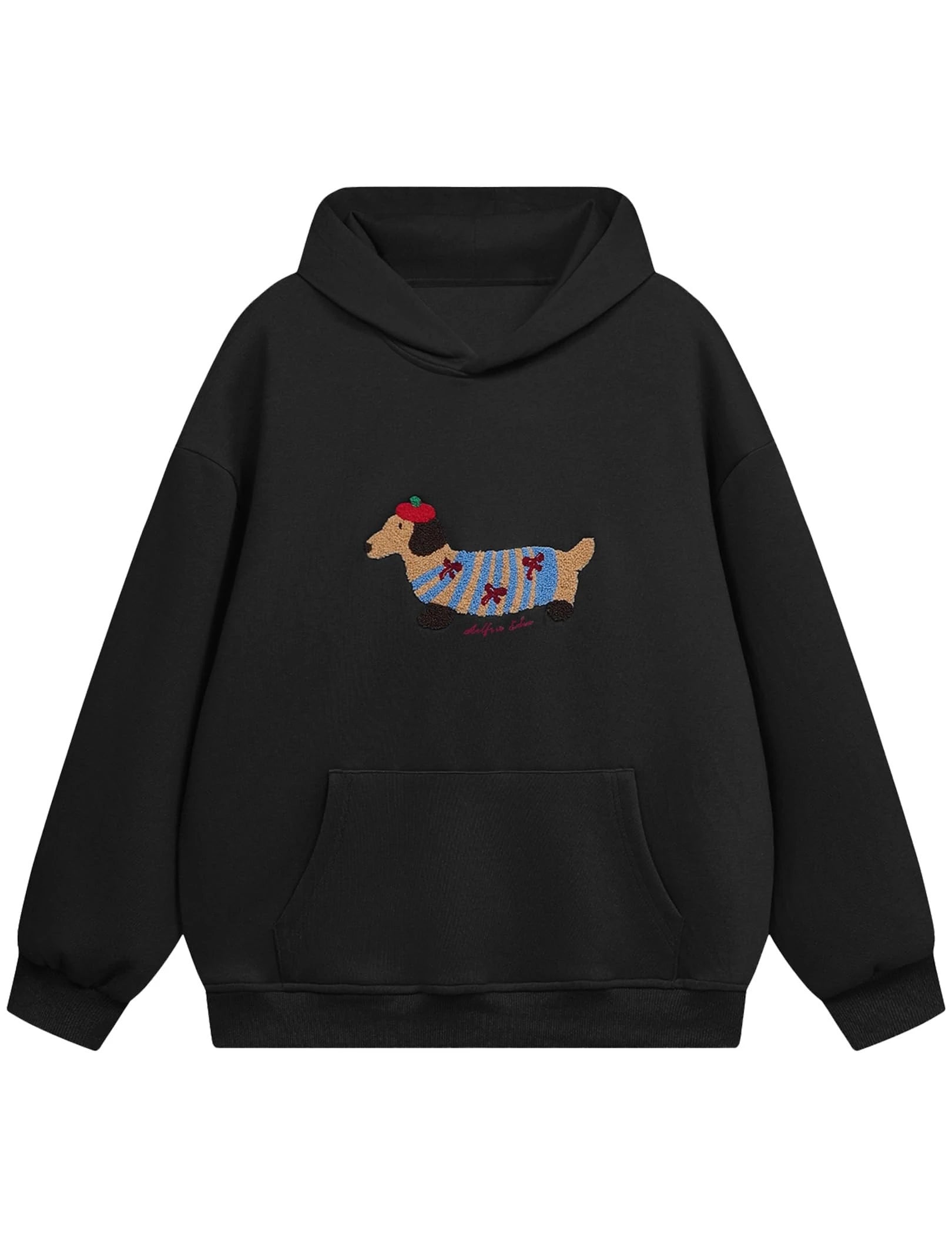 Felpa unisex con cappuccio. Particolare ricamo sul davanti,, maniche lunghe. Tasca stile marsupio sul davanti, fondo e polsini in maglia a coste.
